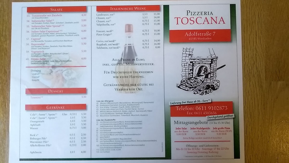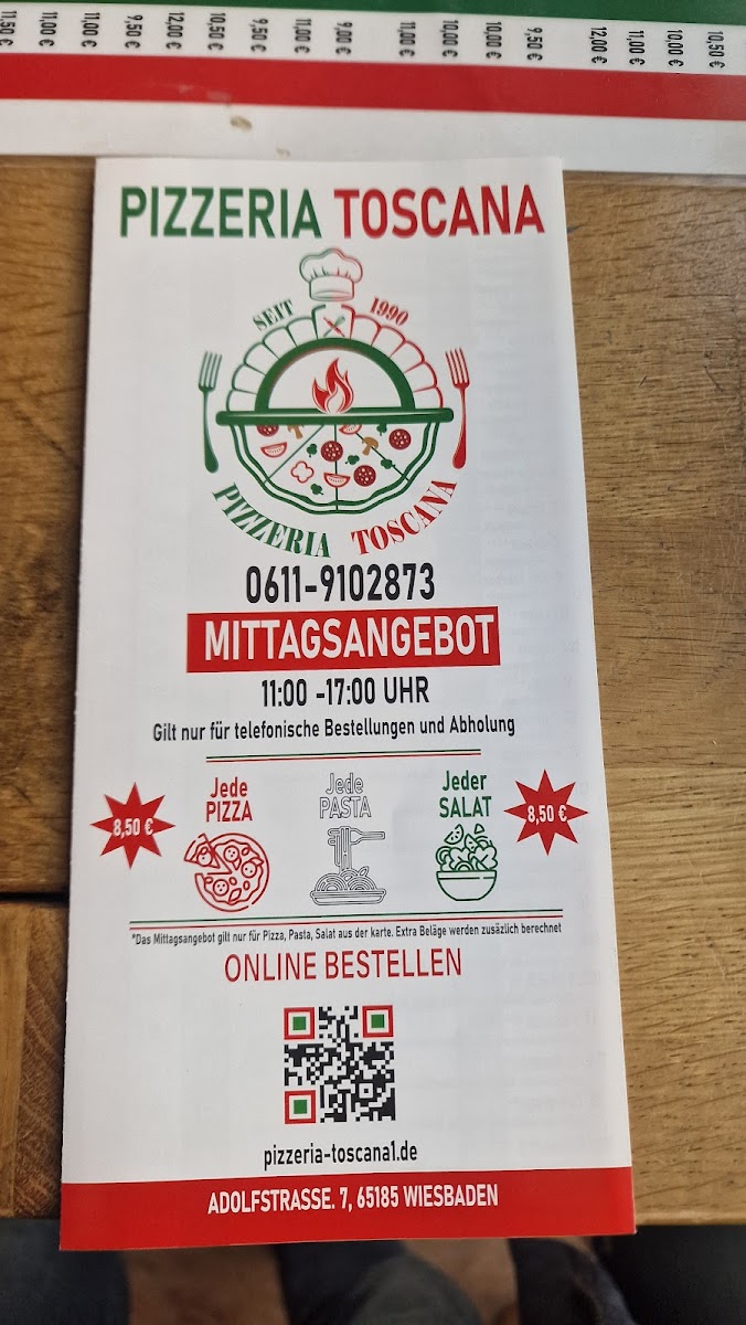 Pizzeria Toscana Wiesbaden offers a genuine taste of Italy right in the heart of Wiesbaden. This cozy neighborhood spot specializes in classic Italian pizzas that balance quality and affordability with ease. Expect perfectly baked pies, generously topped and bursting with fresh ingredients, from just €3.50 to €6. The dough is crisp yet soft, delivering that ideal texture pizza lovers crave. Beyond pizza, the staff's warm, friendly service makes every visit—or takeaway—feel welcoming and personal.
